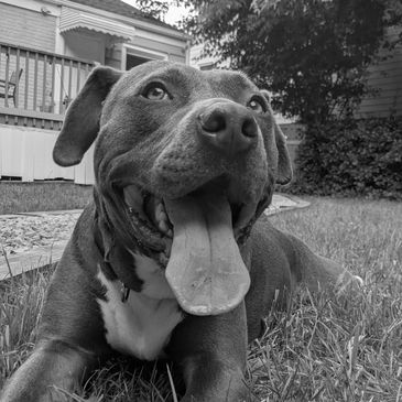 Hero is our 2 year old rescue dog and ever-happy mascot!